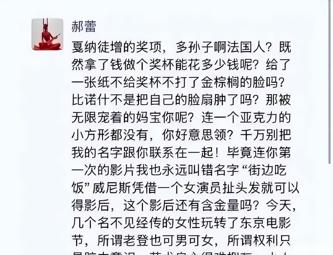 一张网传截图里,同为实力派演员的郝蕾,被指评论: